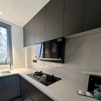 High-End Modern mutfak dolabı basit siyah yonga kapı çekmece HPL bitirmek ahşap malzeme çekmece slayt menteşe içerir